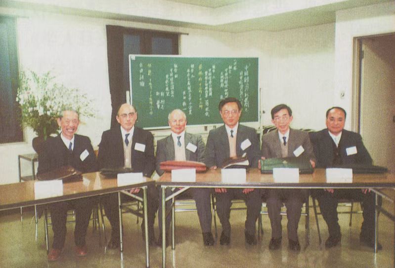 1989年复旦经济学院访日代表团参加研讨会。左起:张薰华、蒋家俊、郑励志、洪远朋、葛霖生、叶世昌