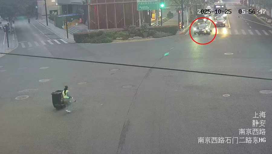 10月25日6时许,静安区石门二路南京西路路口发生一起碰撞事故。电动自行车驾驶人周某从附近小区驶出后,为图方便,直接横穿机动车道,继而逆向驶入对向车道。在路口信号灯为红灯的情况下,周某仍强行通过,恰逢机动车驾驶人李某驾驶小型客车在绿灯亮起后正常缓慢起步。由于周某突然从绿化带遮挡形成的视线盲区窜出,李某刹车不及,将其撞倒在地。事发后,双方报警处理。