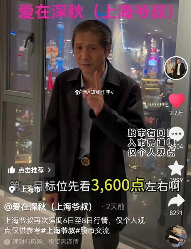 4.“爱在深秋-郑老师”等账号炒作股市走势,随意预测涨跌,博取流量。抖音账号“爱在深秋-郑老师”长期、频繁地通过煽动性或暗示性话语随意预测股市涨跌,博取流量。抖音账号“老实人老王”“晴天(超短裙战法)”等为博眼球、吸流量,长期恶意蹭炒股市波动等热点话题,挑动网民情绪。涉及的账号已被依法依约关闭。