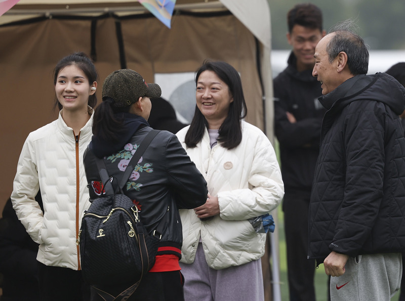 新华社照片,南京,2024年3月17日\n 3月17日,湖南队选手夏思凝(左一)和田径教练员孙海平(右一)在热身场地交流。夏思凝以8秒31的成绩晋级女子60米栏决赛。\n 当日,全国室内田径大奖赛第四站比赛在南京继续进行。\n 新华社记者 廖宇杰 摄