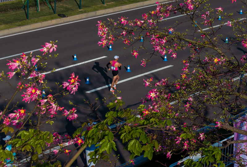 新华社照片,深圳(广东),2025年11月15日\n 11月15日,河南队选手路颖在比赛中。最终,她获得季军。\n 当日,第十五届全国运动会田径项目女子马拉松比赛举行。赛事跨越深圳、香港,是全运会历史上首个跨境马拉松赛事。\n 新华社记者 毛思倩 摄