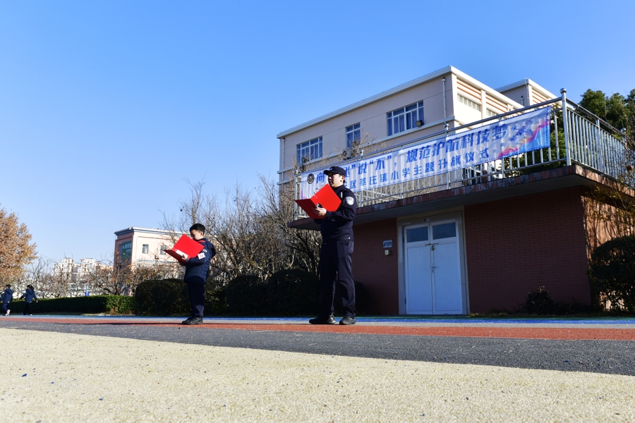早在12月15日,在莘庄镇小学南校区,通过“向‘黑飞’说‘不’,规范护航科技梦”主题升旗仪式,民警一边展示警用无人机的高空喊话、灵活悬停等技能,一边向全校师生深入浅出地讲解“黑飞”行为的安全隐患与法律风险。