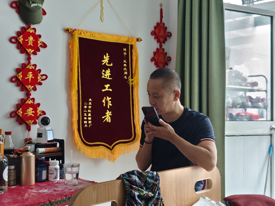 生病之后,母亲成了宋护彬的“孩子”。“每次我进家门,她其实都听着声儿呢,只要我在,她就安心。”就像家长会安装婴儿监视器、实时掌握孩子的情况一样,宋护彬也在房间里安了一个摄像头。出门前,他会先拨通远在太原的哥哥的电话,确保哥哥远程“上线看护”之后,才安心离开。