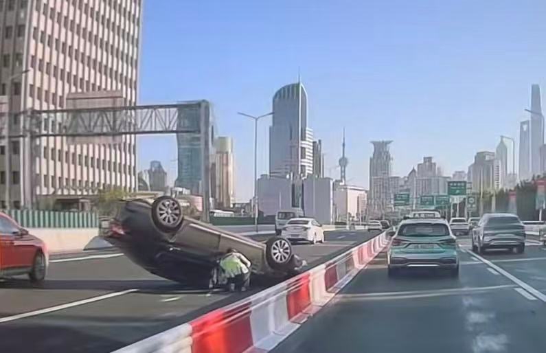 据了解,11月13日上午7时50分左右,一辆轿车行驶至事发路段时,车辆擦撞到高架上的隔离设置,随后车辆翻车。途经现场的市民说,当时看到事故车辆四轮朝天,车辆占据延安高架南侧西藏南路路段主线的2号和3号车道。